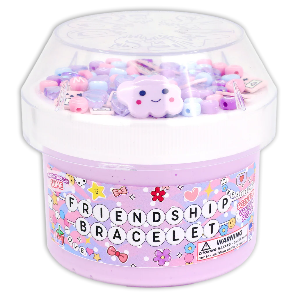 Ready to build the cutest friendship bracelet AND play with slime at the same time? This Memory Dough is the softest slime we've ever made and has a delicious vanilla sugar scent. Topped with all the goodies to make your best bracelet, from purple heart beads to the classic letter beads and more! Ages 5+
