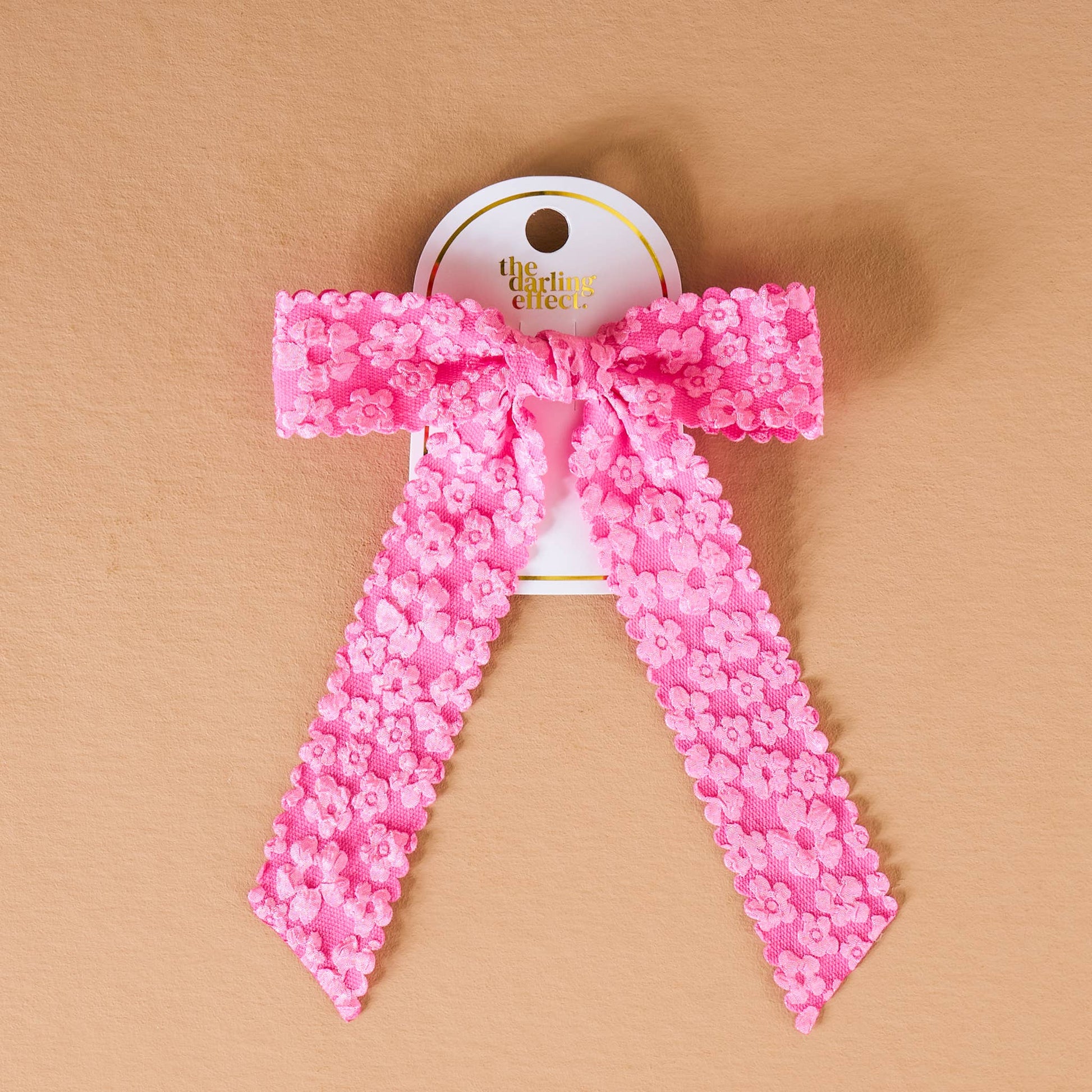 Add a sweet touch of charm to your look with our Flower Scallop Hair Bow! This bow features a beautiful scalloped edge design adorned with subtle flower details for a feminine, elegant finish. The gold barrette clip closure ensures a secure and comfortable all-day hold.