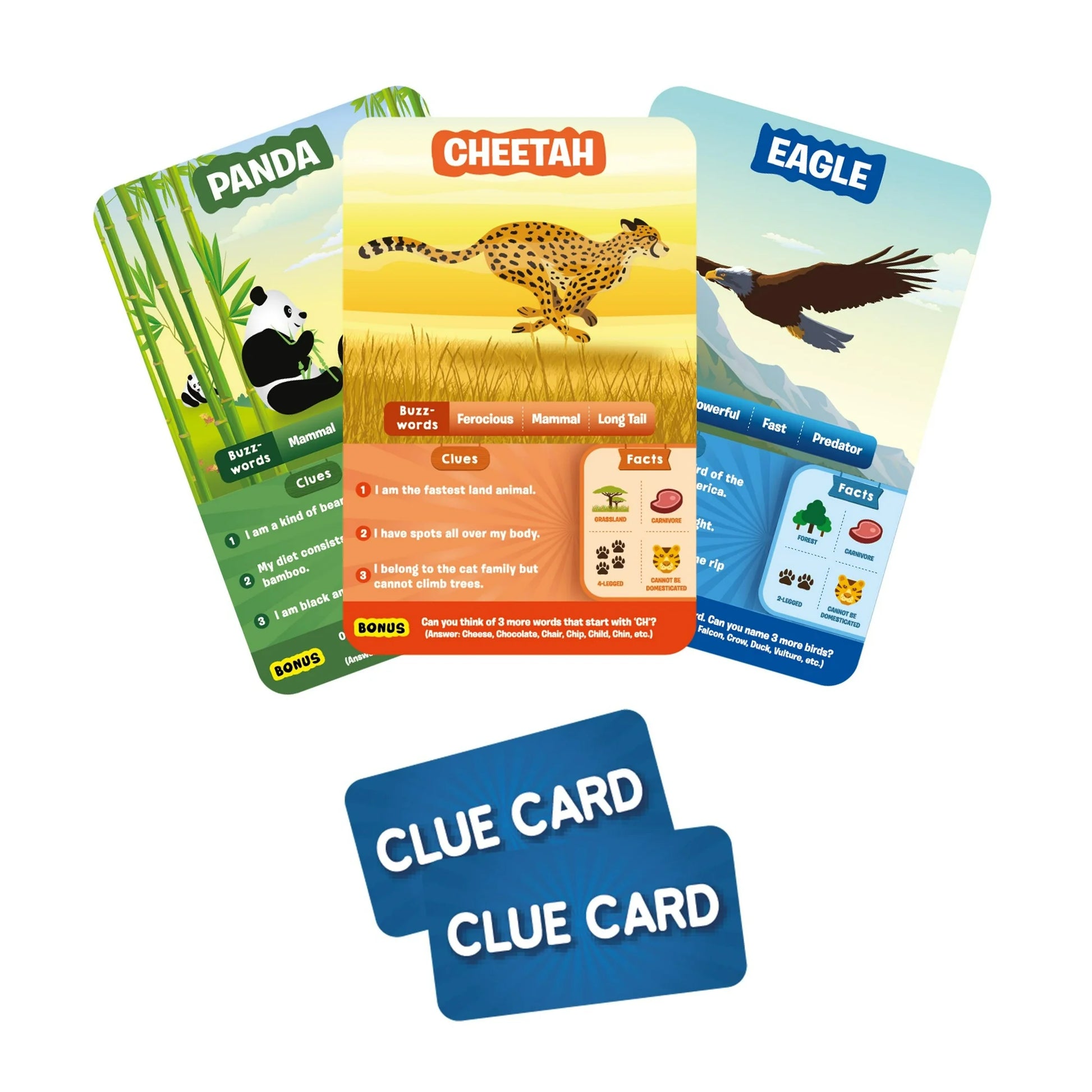 Guess in 10 World of Animals by Skillmatics is the ultimate family guessing game for child ages 6 and up. Players will test their animal knowledge by asking up to 10 yes or no questions to figure out the animal on the card. "Is it a mammal ?" "Does it fly?" Use buzz words and clues to narrow down the correct answer. Correctly guess 7 cards to win the game. Along the way, learn over 300 fun facts about animals from all over the world. The game includes 50 illustrated animal cards and 6 clue cards to use when stumped. This fun and award-winning card game teaches communication skills, critical thinking, and makes a great game for family game night! For 2-6 players.