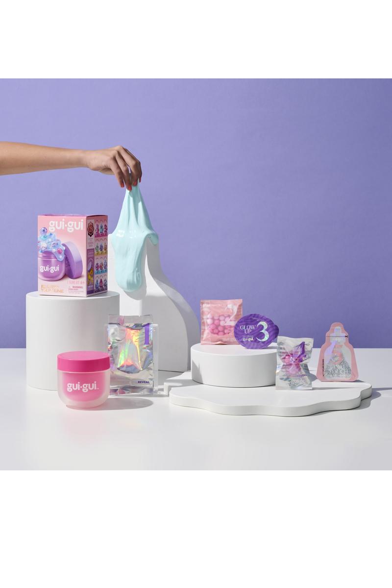 Get ready to glam up your slime with Gui Gui™! This surprise kit combines gooey fun with collectible cuteness, letting kids mix, decorate, and discover a mini figure hidden inside. Each jar is packed with mystery and sparkle—perfect for trend-driven slime lovers!