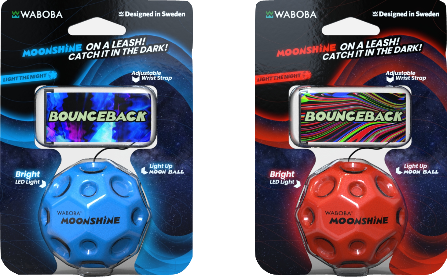 LED BounceBack Moonball: it's a Moonball on a leash! Strap on the adjustable wrist strap, throw the ball, and catch it on the rebound! Ages 8+