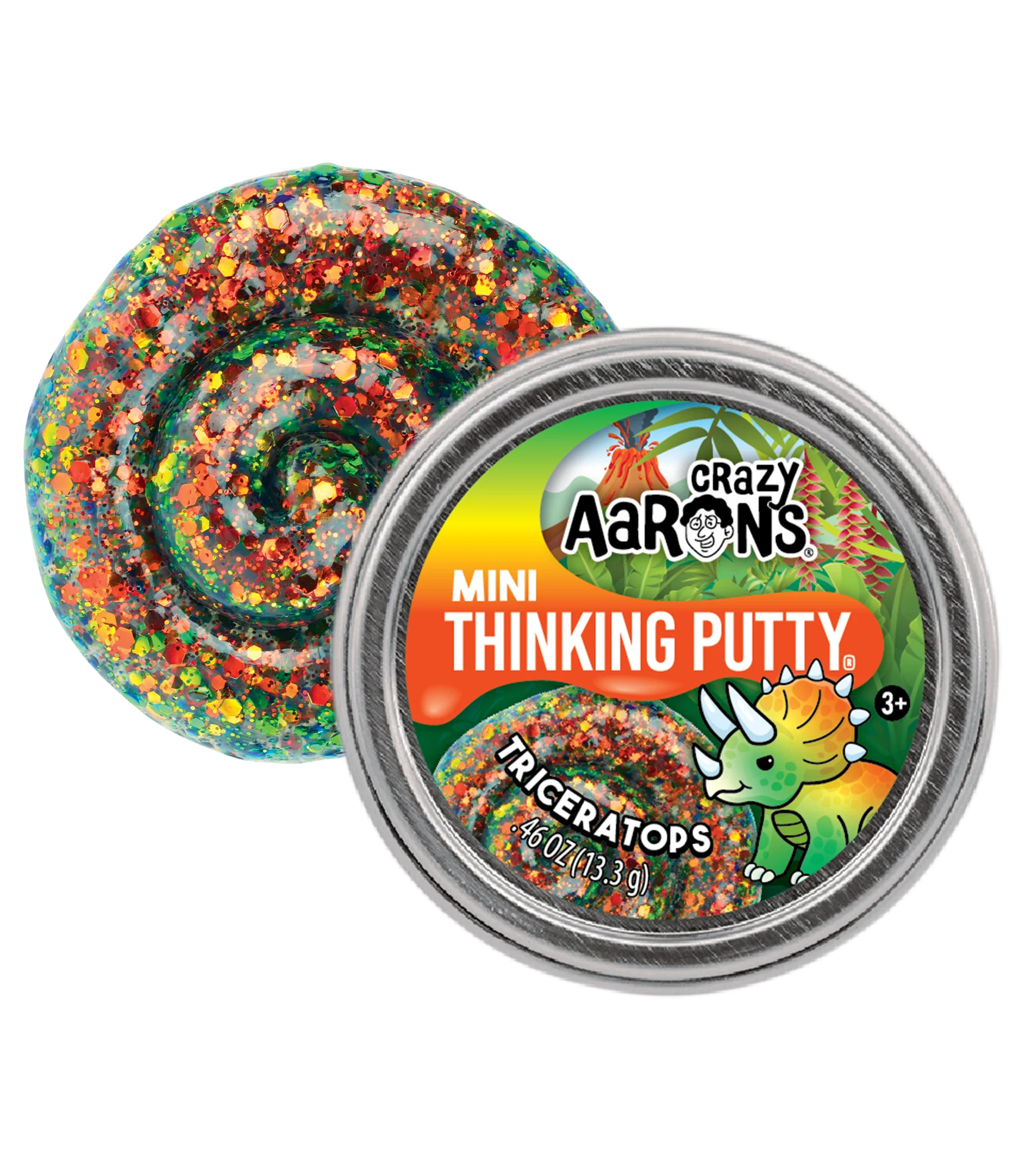 Have you ever wished you could have a pet dinosaur? Well, now you can with Triceratops Mini Thinking Putty®! This clear putty contains color-shifting glitter that can look green or orange depending on which way you move it. Be sure to have plenty of veggies available for your new friend- Triceratops only eat plants!