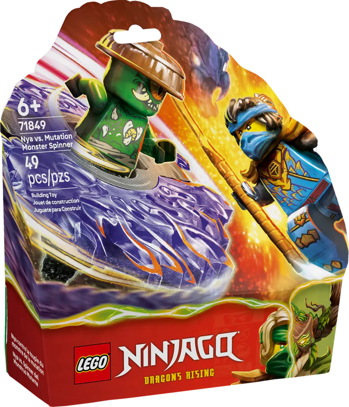 Boys and girls ages 6 and up will love building this LEGO® NINJAGO® Nya vs. Mutation Monster Spinner (71849) battle toy and recreating scenes from season 4 of the NINJAGO Dragons Rising TV show. Once it’s built, kids push the launcher’s button to unleash the spinner toy into a quick spin and watch to see if the 2 elemental power parts fly off it when it hits its target. This great value small LEGO set comes with 2 minifigures: Nya with a glaive weapon accessory and the villainous Mutation Monster, who can ride inside the spinner toy. Kids enjoy countless hours of good vs. evil battles with these NINJAGO characters. The LEGO NINJAGO range of building sets and adventure toys includes detailed mechs, vehicles, dragons and temples so fans can role-play awesome ninja action. Kids can build each playset with confidence using the LEGO Builder app – zoom, rotate in 3D and track progress with easy-to-follow digital instructions. Set contains 49 pieces.